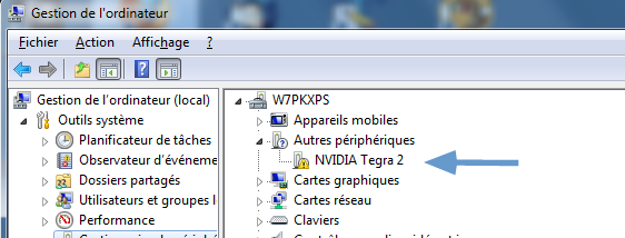 Cliquer sur "Gestionnaire de périphériques". Dans "Autres périphériques", vous devez avoir NVIDIA Tegra 2